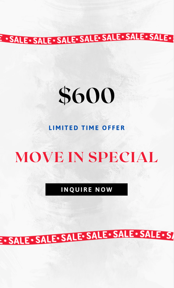 $600 first month, no admin fee, and $100 off per month for the remainder of the lease.